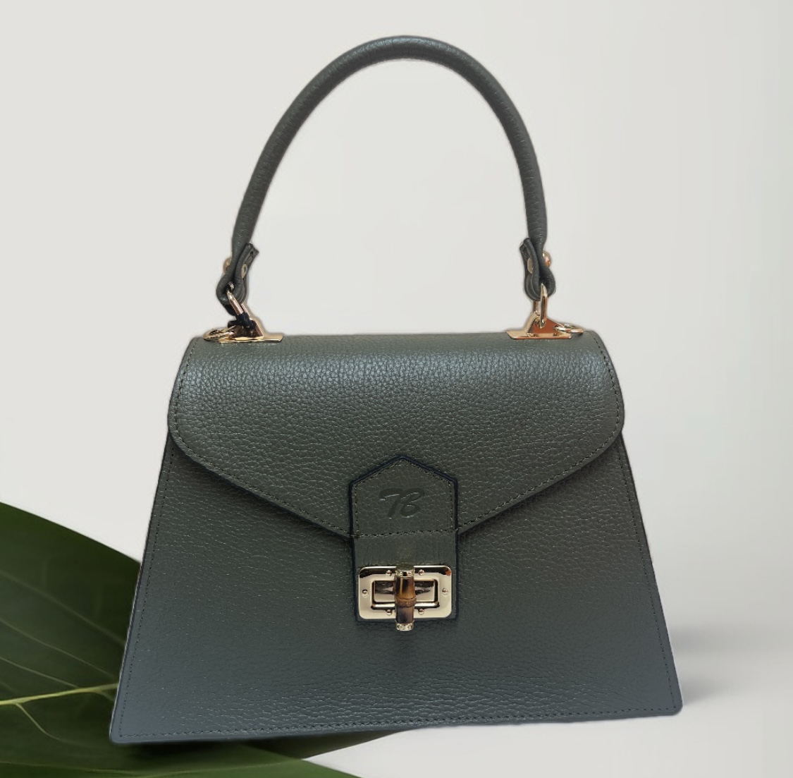 Gentuta midi din piele naturala khaki TB6558