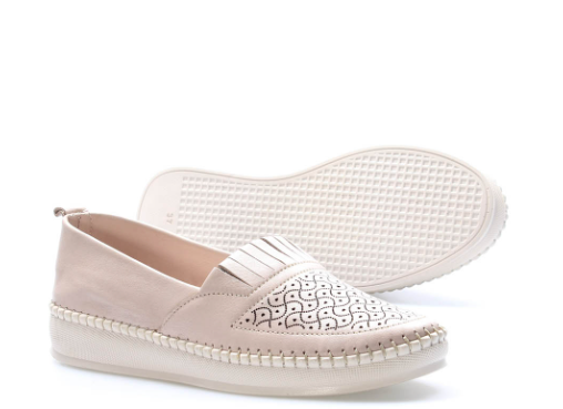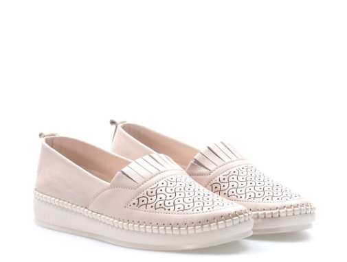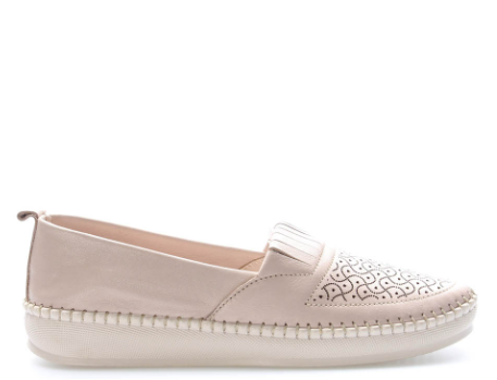 Pantofi casual crem cu fermoar lateral din piele naturală ZA3102